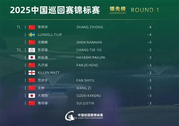 摘要:北京时间12月18日,2025中国巡回赛锦标赛在广州南沙高尔夫球会正式拉开战幕。在这场年度收官大戏的首轮较量中,球员们上演了一场精彩的“混战”。中国球员沈楠楠、张梓洪与瑞典选手LUNDELLFilip同交66杆(-4),三人并列领跑积分榜。身后是一个庞大的追赶集团——包括凡济诚、范诗宇、王梓、隋明睿...