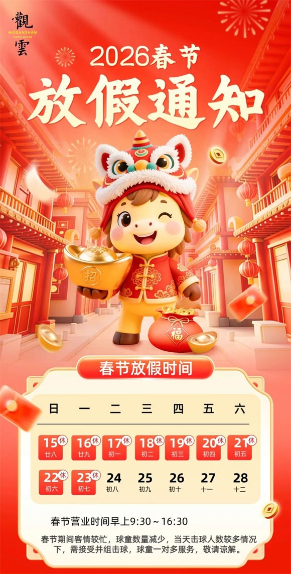 莫干山观云高尔夫球会2026年春节黄金周营业安排