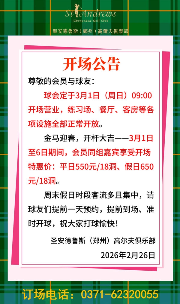 开场公告!圣安德鲁斯郑州高尔夫球会3月1日正式开场