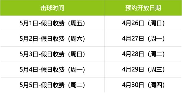 天马乡村俱乐部5月击球时间如下所示: