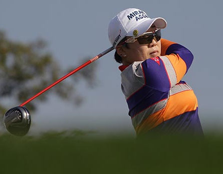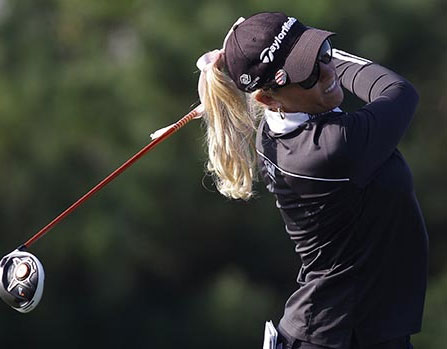 魏圣美(Michelle Wie)韩裔美国球手在第一轮第6洞击球瞬间