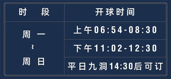 2.封场日期:2025年12月每周一正常营业(特殊封场维护除外);3.平假日均为双Tee开球,八分钟一组;不可预订36洞,加打视当日营运情况而定;