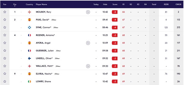 并列第九位的集团中星光熠熠。英格兰名将汤米·弗利特伍德交出5鸟1柏忌1双柏忌-2杆,爱尔兰球员肖恩·劳瑞同样打出5鸟3柏忌的-2杆,而南非好手泰瑞森·劳伦斯则交出了3鸟1柏忌。三位实力派球员均以-2杆开局,位列领先榜上游,为后续的比赛保留了充足的机会。