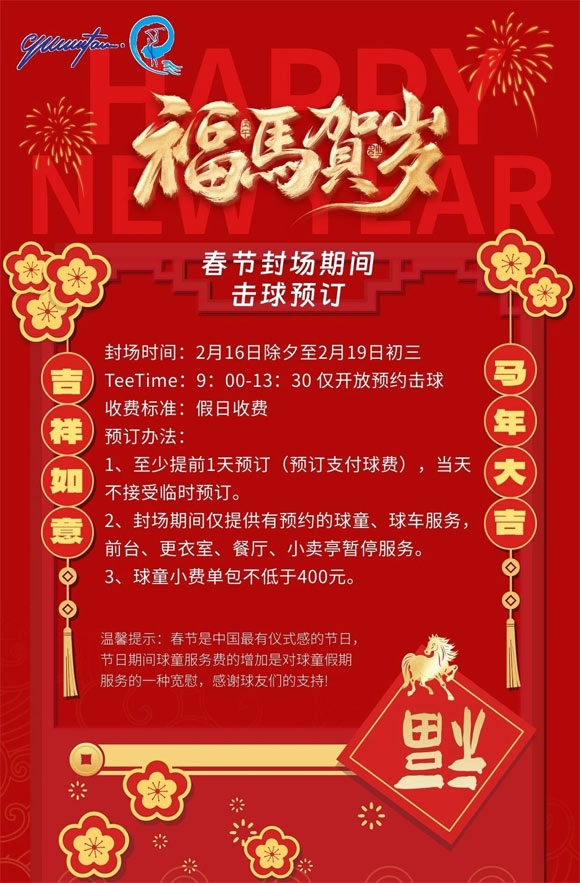农历马年、策马扬鞭,续写新东海高尔夫的暖意,为了给您一个祥和快乐的高尔夫假期,球会安排如下: