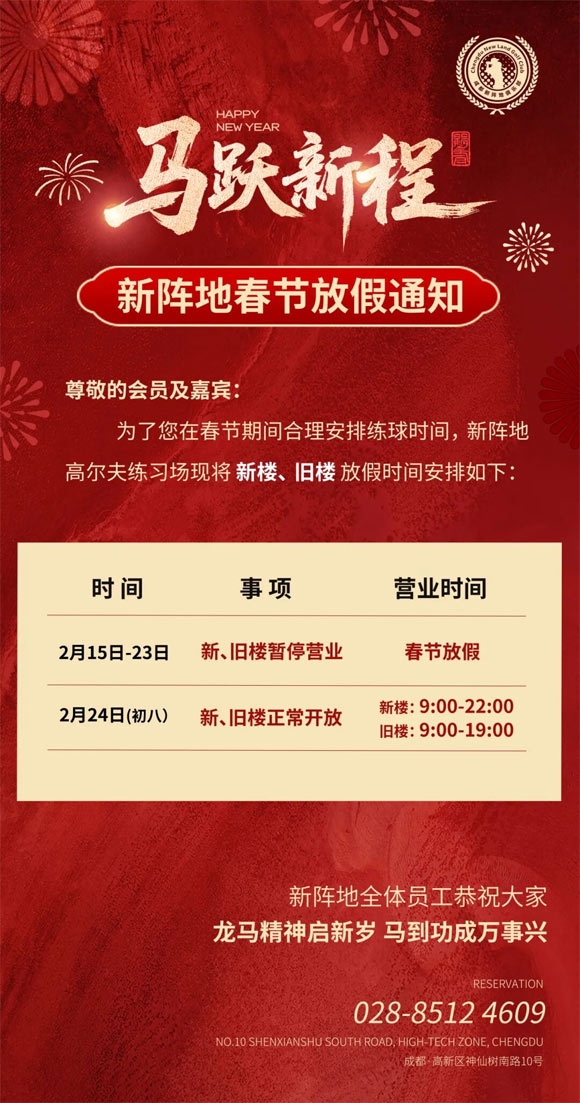 摘要:以梦为马,挥杆天涯丨新阵地春节放假通知!